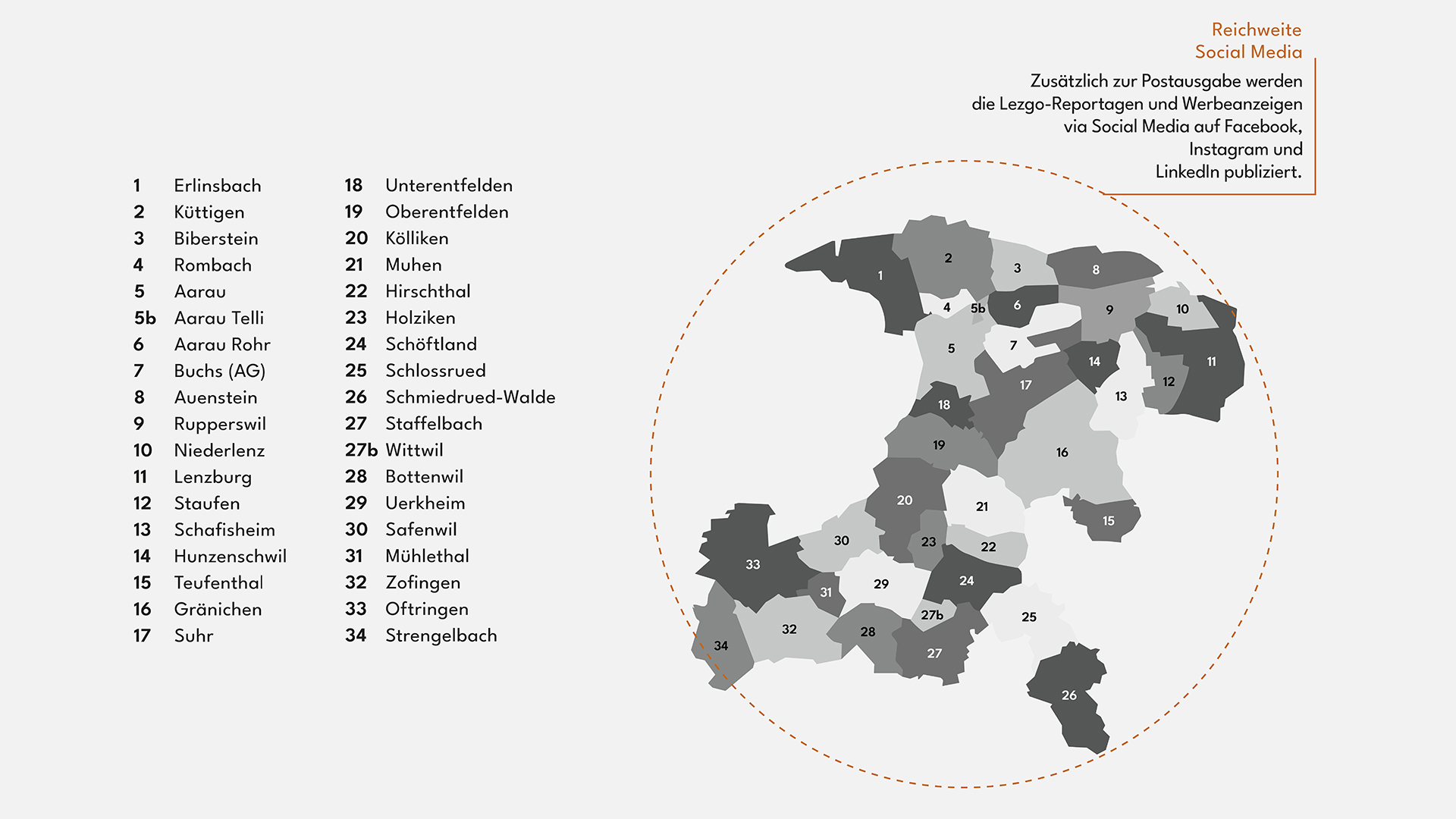 Lezgo wird aktuell in 34 Gemeinden zugestellt und erreicht rund 36'000 werbeinteressierte Menschen – sowie x-tausend weitere online.
